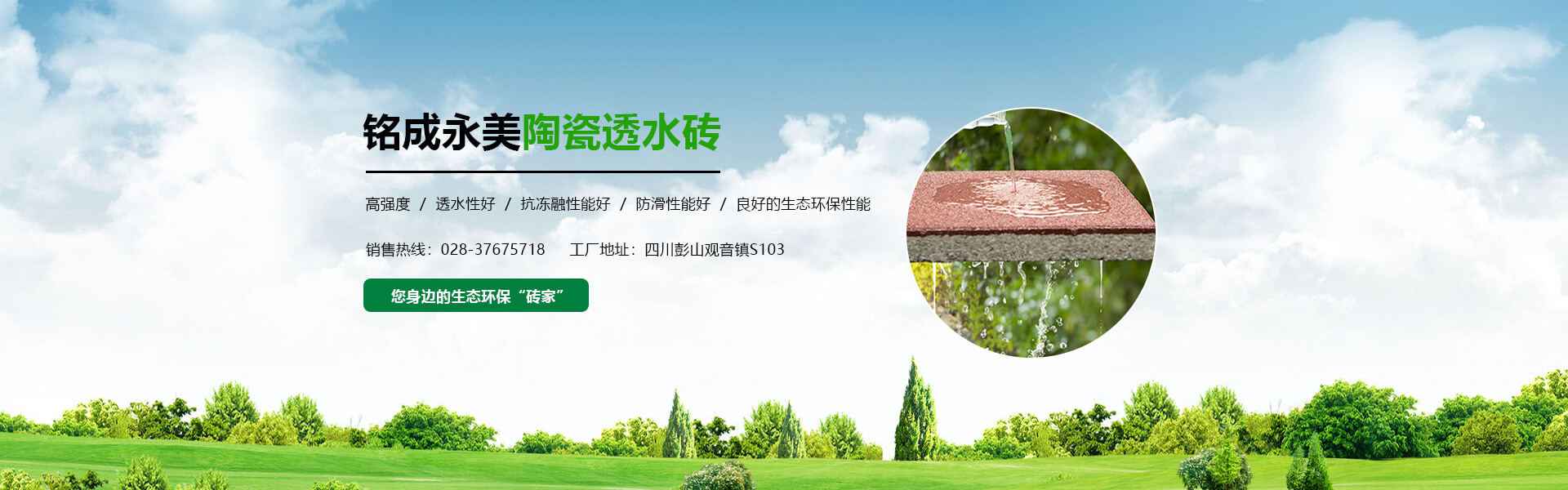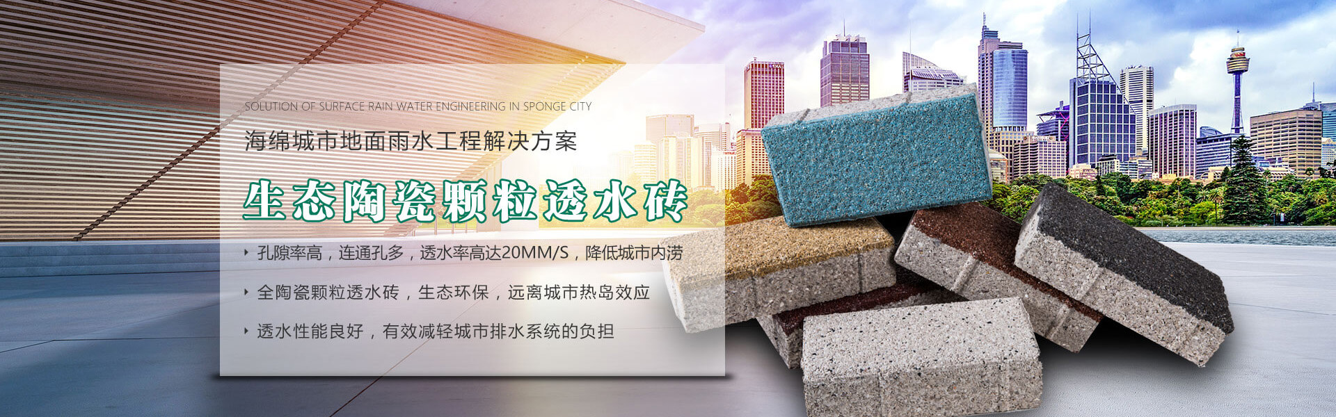 四川銘成永美環保科技有限公司(www_mcotcn_com.berin.cn)是國內非常早研究探索海綿城市的企業之一,公司主導產品:海綿城市鋪路磚家---銘成永美生態陶瓷透水磚已在全國多個重點項目使用。公司透水混凝土、雨水收集利用系統正在全國推廣。公司將整合海綿城市規劃設計、污水處理、污泥利用、環保設備、社會資本等海綿城市相關產業。為解決城市“熱島效應”、地表硬化,防止城市內澇,營造高質量的自然生態環境,改善城市生態平衡而不斷努力!公司將充分利用現有的互聯網資訊平臺,整合生態海綿城市產業鏈,打造集互聯網、科研、生產、銷售、規劃設計、PPP項目營運、工程施工為一體的綜合性環保科技公司,已初步建立覆蓋全國的業務團隊和渠道。
